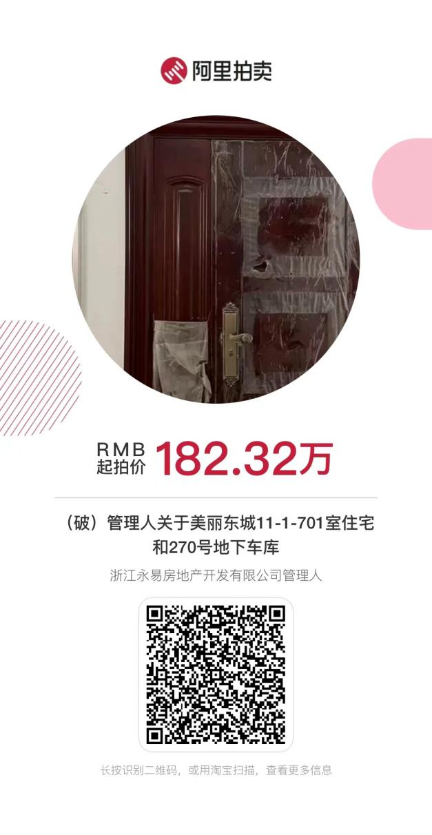 管理人将于2022年1月7日10时至2022年1月8日10时止(延时除外)在阿里司法拍卖网络平台进行公开拍卖活动,拍卖永易公司所开发的衢州市衢江区“美丽东城”小区11号楼一单元、三单元部分住宅,且一套住宅搭配一个地下车位。
